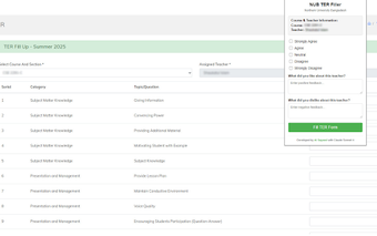 NUB TER Filler, Kuzey Üniversitesi Bangladeş (NUB) öğrencileri için tasarlanmış bir Chrome eklentisidir. Bu araç, Öğretmen Değerlendirme Raporu (TER) formunu doldurma sürecini otomatikleştirerek, öğrencilerin zaman kazanmasını sağlar. Kullanıcılar, her soru için geribildirim seçeneklerini manuel olarak seçmek zorunda kalmadan, tüm değerlendirme sorularını hızlı bir şekilde doldurabilirler. Eklenti, kullanıcıların tercih ettikleri geribildirim seviyeleriyle tüm puanlama alanlarını anında doldurur ve yorum bölümlerini kişisel geri bildirimleriyle otomatik olarak doldurur.